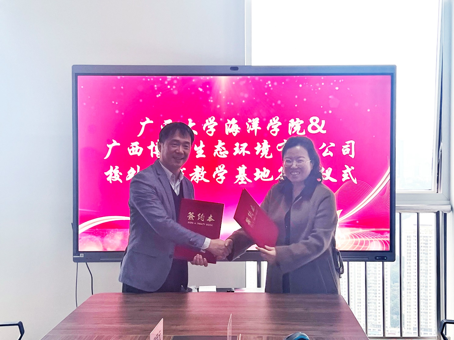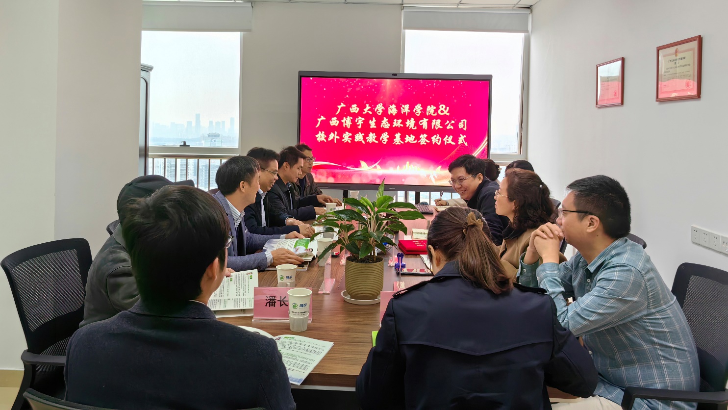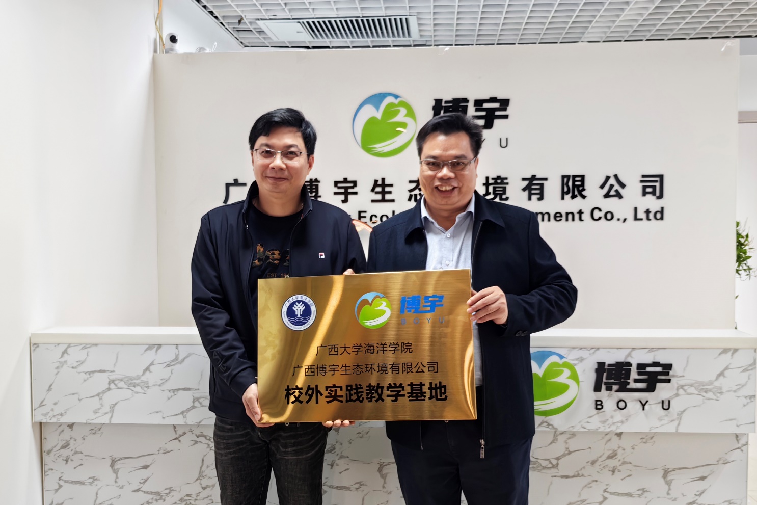 2023年3月28日,天堂在线视频最美女人体内射精一区二区与广西博宇生态环境有限公司举行大学生校外实践教育基地协议书签署暨授牌仪式。院党委副书记朱迅成与广西博宇生态环境有限公司副总经理文丰玉分别在建立大学生校外实践教育基地协议书上签字, 院党委书记谭运阳代表学院将“大学生校外实践教育基地”的牌匾授予广西博宇生态环境有限公司总经理邓杰。多位天堂在线视频毕业的博宇高级技术合伙人等出席签约授牌仪式。