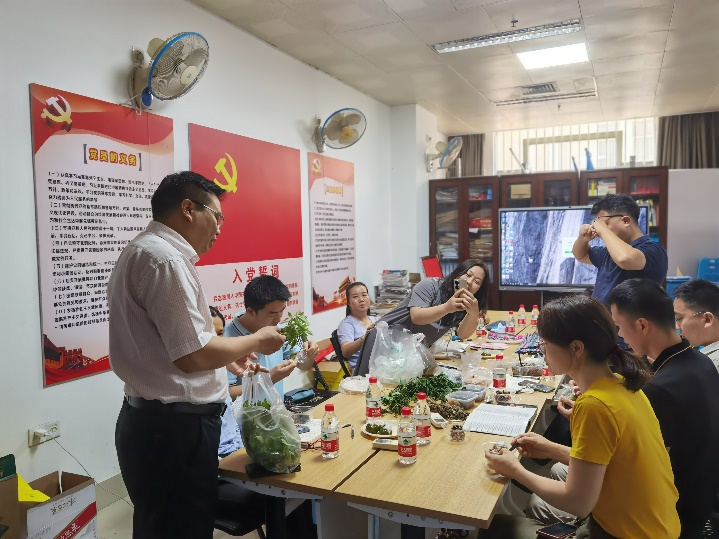 在民俗文化分享会上,林玉华老师特意带来了五色糯米饭和艾叶糍粑跟大家分享节日喜悦,并且拿来做五色饭糯米饭和艾叶糍粑的植物食材教大家怎么做这两个壮乡美食,大家在品鉴和畅谈中加深了“三月三”壮乡传统文化、习俗的认识,增进各族教师的交往交流交融。(林玉华/文 曾心茹/图 周剑/编辑 朱迅成/审核)
