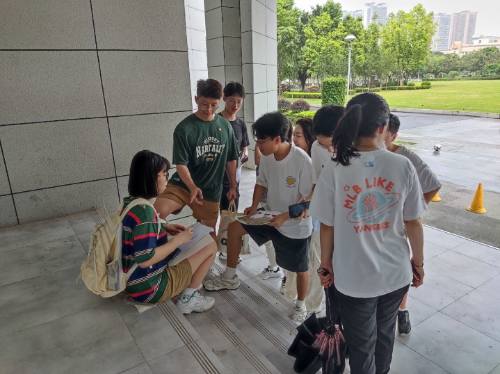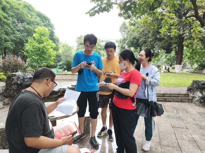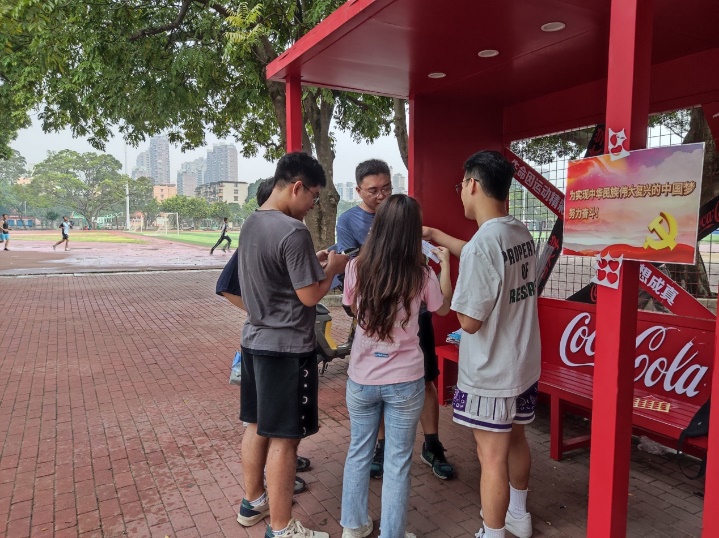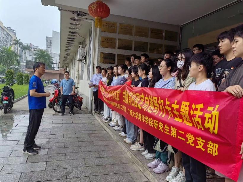 院党委副书记朱迅成在主题党日活动开展前强调,在全党开展学习贯彻习近平新时代中国特色社会主义思想主题教育之际,希望两个支部的党员通过拓展学习形式开展联学共建,真正把习近平新时代中国特色社会主义思想入脑入心不断提升同学们的理论素养,并且将理论学习成效应用于指导实践,开展专业知识的交叉融合研究,为海洋强国战略以及中国式现代化建设贡献每个党员的青春力量。本次活动的作答内容主要是习近平新时代中国特色社会主义思想及党的二十大精神,“知识问答+定向越野”的形式将知识与运动相结合,上演了一场“脑力+体力”的碰撞,通过趣味性的答题打卡活动来加深党员对理论知识的学习和理解。两个支部的成员组成7个小组,按照不同的地图指示方向在相应的检查点进行打卡集贴纸,根据打卡完成的先后顺序进行小组排名。