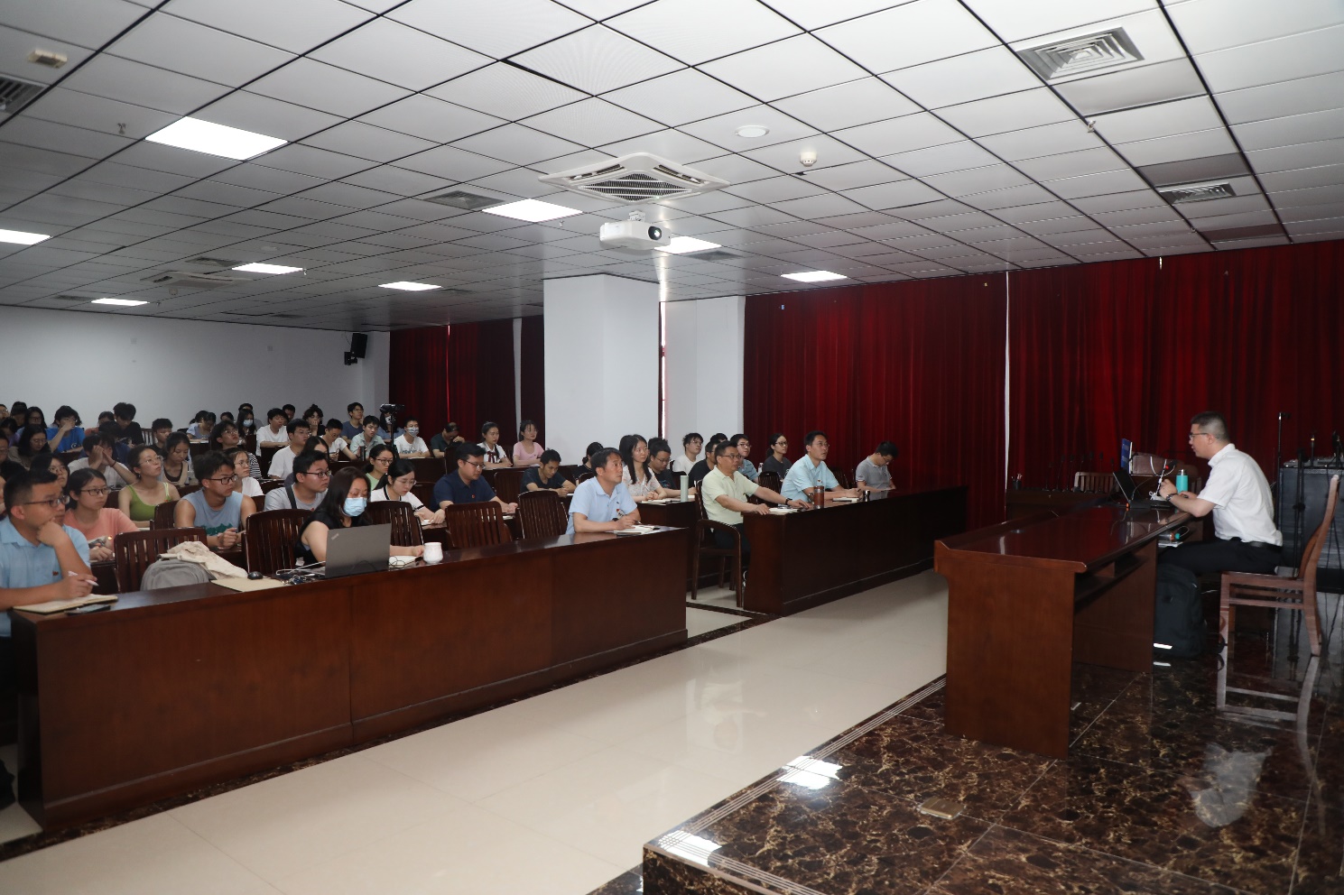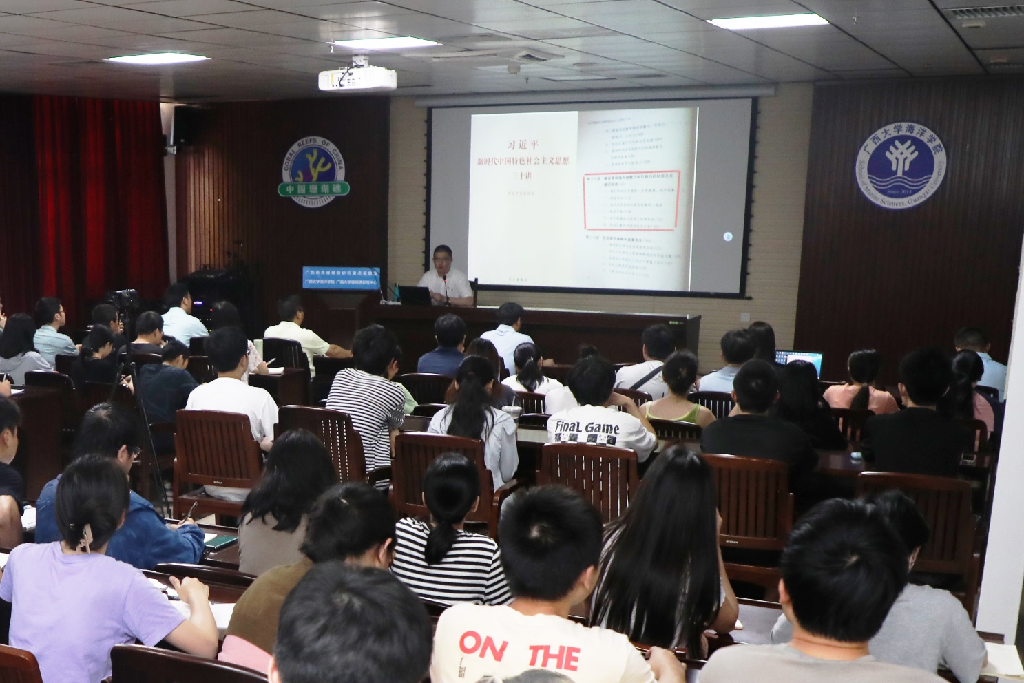 在党课中,庄严副教授通过举例论证的方式,为我们列举了目前我国在意识形态领域中出现偏差的典型事件,他一一指出事件中存在的错误,并深入分析乱象背后所潜在的危机,让大家了解到当前国际形势复杂多变,意识到必须清醒认识意识形态领域斗争的严峻性、复杂性和长期性。他强调,要始终坚持马克思主义在意识形态领域的指导地位,广泛践行和弘扬社会主义核心价值观,巩固壮大主流思想舆论,牢牢掌握党对意识形态领域工作的领导权,意识形态工作必须居安思危,落实领导责任,健全工作制度,不断加强学习和强化理论武装,提高预警预防和处置能力,始终牢记以人民为中心的工作策略,并且做好“持久战”的准备。