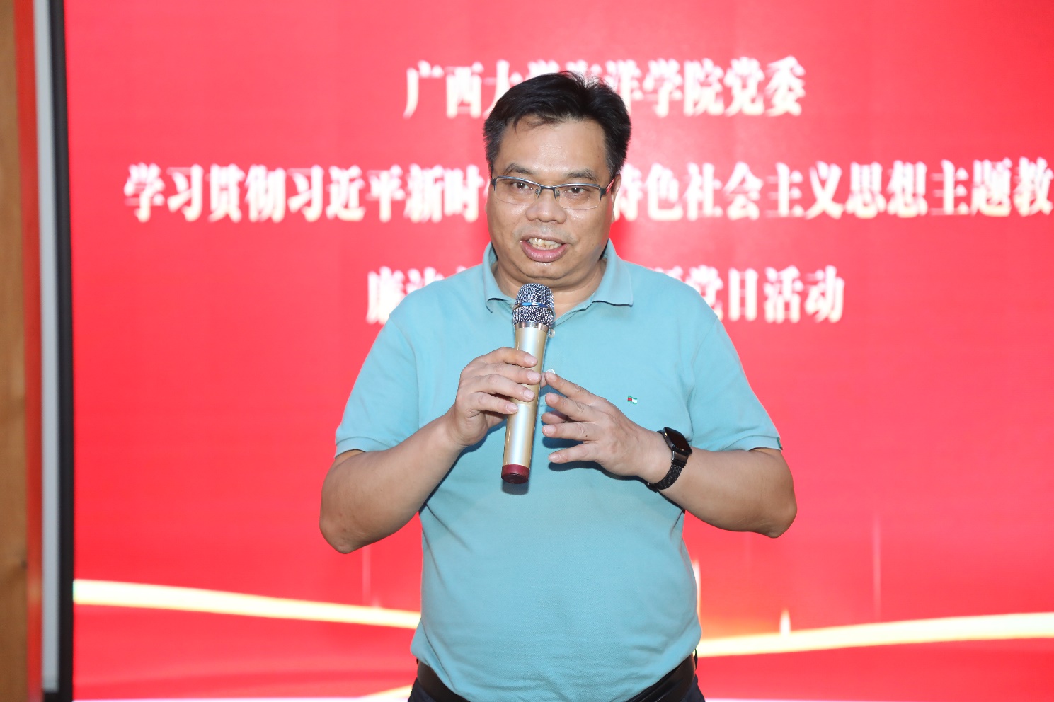 为深入开展学习贯彻习近平新时代中国特色社会主义思想,5月30日下午,我院党委组织教师党员到南宁市江南区廉洁文化教育基地“茶廉印象”开展“清风扬正气 茶廉入人心”廉洁文化教育的主题党日活动。