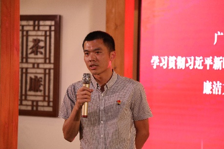 在活动的最后,党委书记谭运阳做了总结发言。他指出要深入学习贯彻习近平总书记关于全面从严治党系列重要论述,坚持把加强廉洁文化建设作为一体推进不敢腐、不能腐、不想腐的基础性工作,科学谋划,采取有力举措,抓好落地落实,切实通过廉洁文化建设不断增强党员干部的思想自觉、政治自觉、行动自觉。他强调具体落实到每一个党员身上就是要坚持以案为鉴,时刻警钟长鸣;立足本职岗位,履职尽责;自律克己、求真务实。