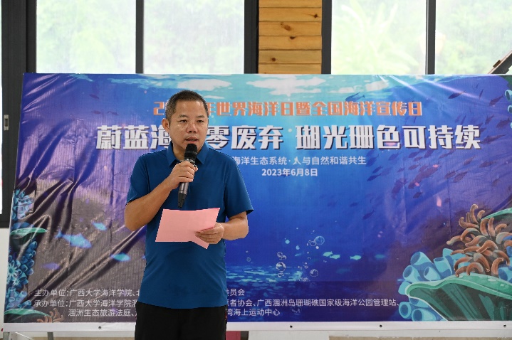 6月8日上午,以“蔚蓝海岛零废弃 瑚光珊色可持续”为主题的2023年“世界海洋日暨全国海洋宣传日”主题活动在天堂在线视频最美女人体内射精一区二区涠洲岛珊瑚馆举办。本次活动由天堂在线视频最美女人体内射精一区二区、北海市涠洲岛旅游区管理委员会、北海市海洋局主办。天堂在线视频最美女人体内射精一区二区涠洲岛珊瑚馆、北海民间志愿者协会、广西涠洲岛珊瑚礁国家级海洋公园管理站、涠洲生态旅游法庭、涠洲镇人民政府、涠洲岛南湾海上运动中心联合承办。活动还得到了北海市公安局涠洲岛分局、涠洲镇渔牧站、北海市涠洲岛新绎海洋运动有限公司、北海探索潜水运动基地有限公司、深呼吸潜水运动有限公司、涠洲岛民宿客栈与精品酒店协会等支持。