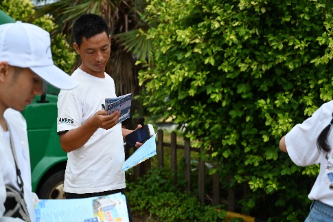 涠洲岛珊瑚馆工作人员与志愿者发放宣传册及科普珊瑚保护知识