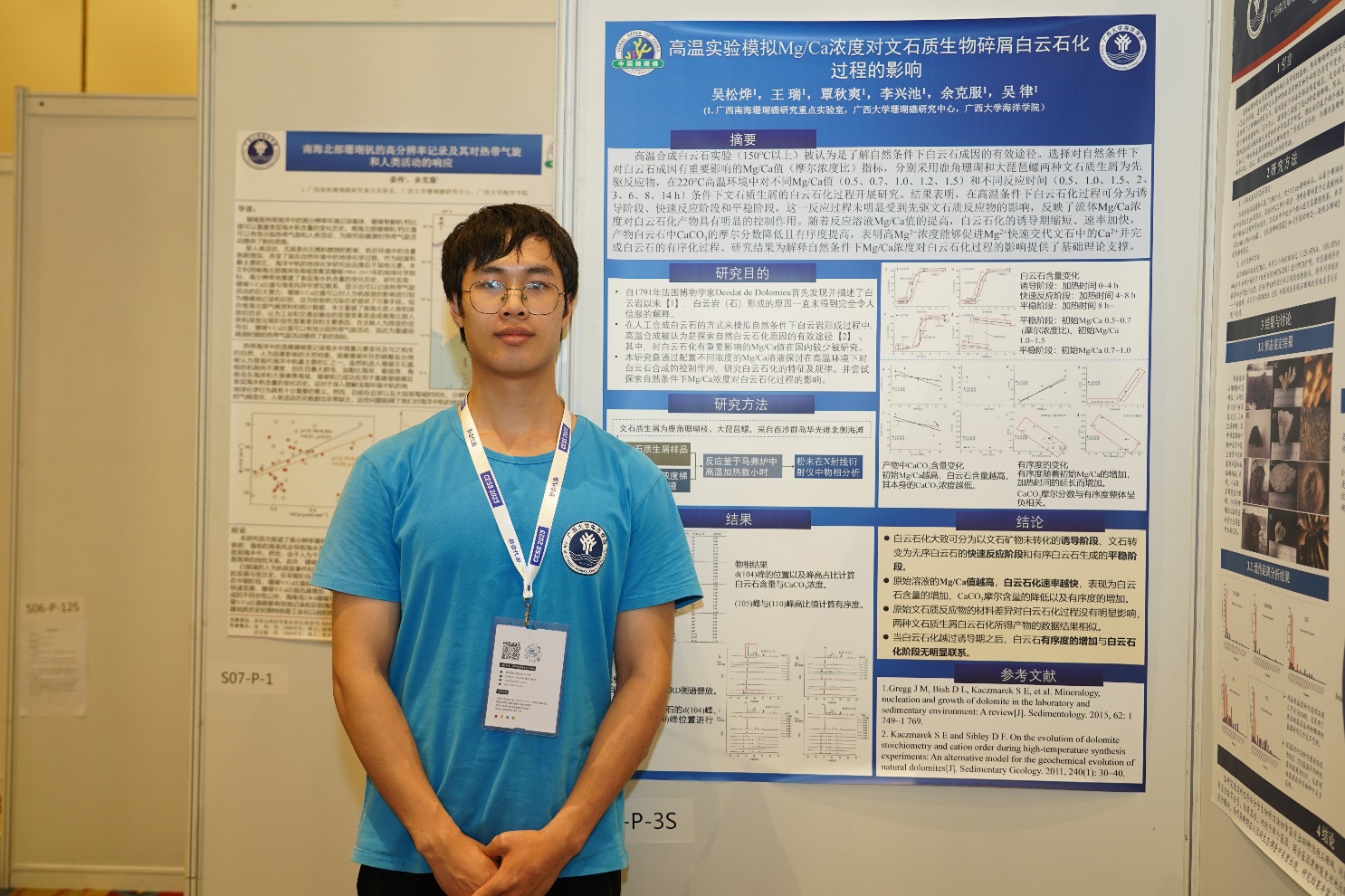 2023年7月5日至7日在上海举行的第七届地球系统科学大会中,我院2019级“海洋科学”专业本科学生吴松烨的展板报告“高温实验模拟Mg/Ca浓度对文石质生物碎屑白云石化过程的影响”,入选大会“南海珊瑚礁:形成演化历史与生态环境过程”专题。