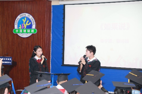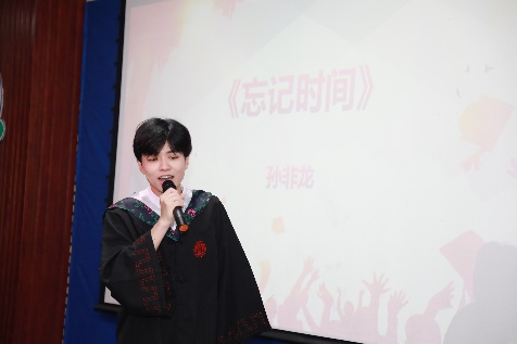 典礼开始前,我院2023届毕业生孙非龙、鲁宇贤、黎诗颖等同学用歌声唱出自己对学院依依不舍之情、回顾了在学院深造的美好过往。