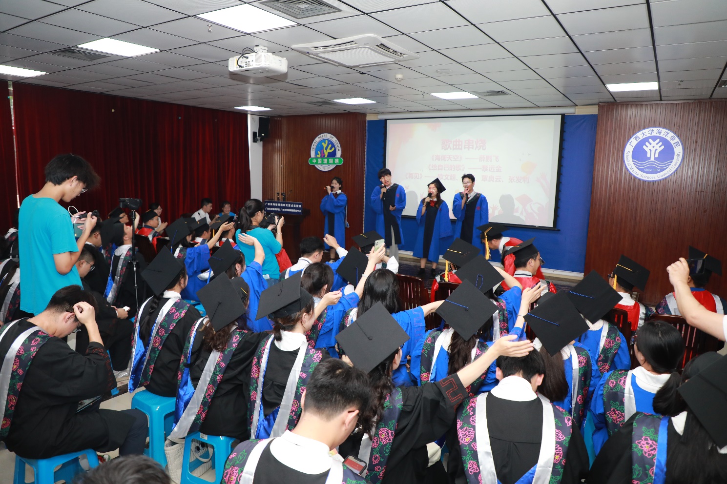 最后,伴随着薛鹏飞、黎远金、欧文超、门征、覃良云、张发利等同学携手共唱的串烧歌曲中2023届毕业典礼落下帷幕。学有所成的海院学子们,将带着老师们的殷切祝福和对未来的美好期盼,在人生路上继续奋勇攀登。(团委学生会、周剑/文 梁日升、邱书维、周剑/图 周剑/编辑 朱迅成/审核)