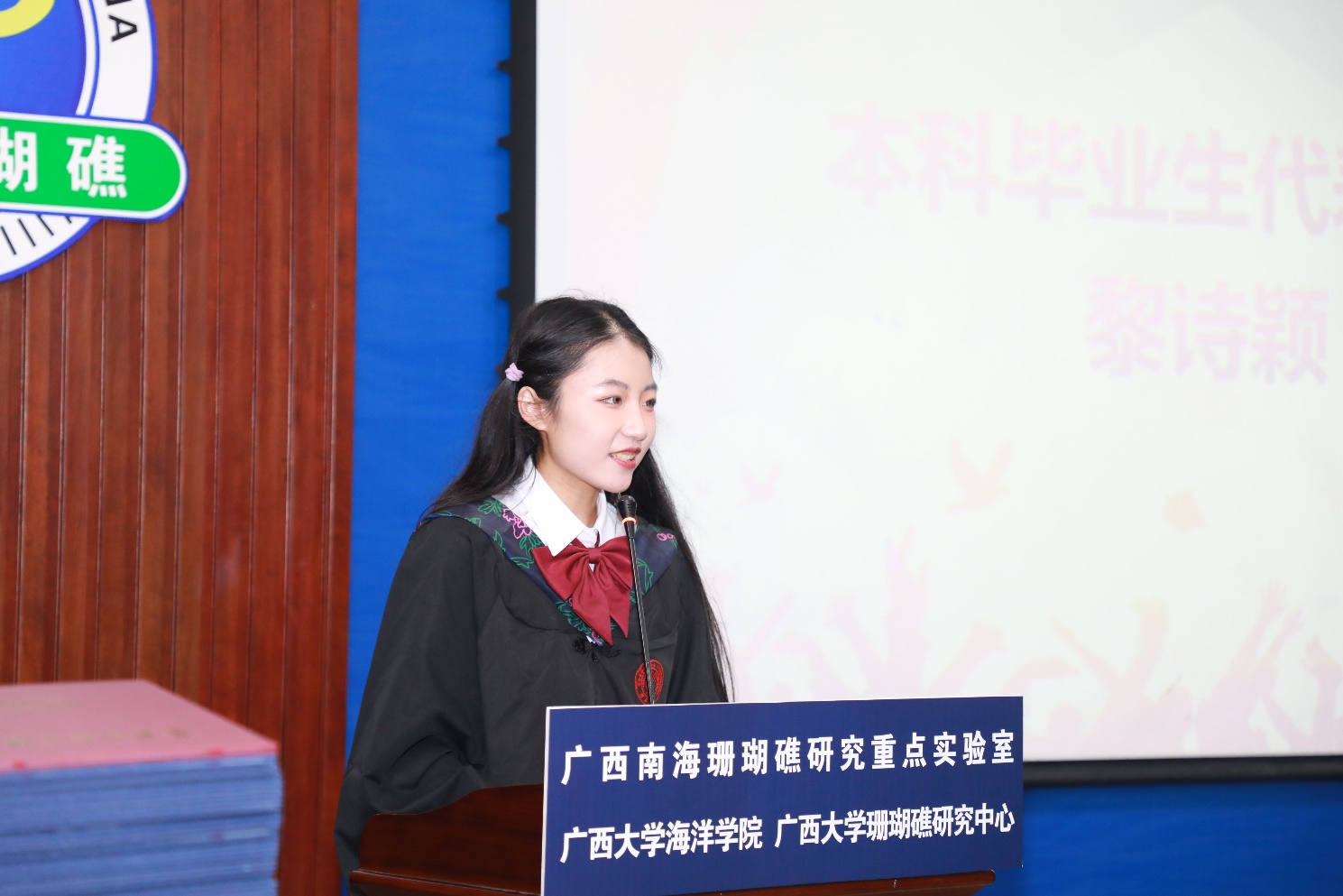 海洋科学2022级本科生毕业生代表、2023届天堂在线视频优秀毕业生获得者黎诗颖对学院提供优秀的学习环境和成长平台表示感谢,回顾了大学四年在专业知识、组织协调能力、团队协作能力和沟通表达能力等的成长和收获,对辛勤耕耘的老师、家人、朋友、同学表示感谢,对未来继续实现自己的梦想而努力奋斗。海洋科学2023届硕士毕业生代表梁日升作为最美女人体内射精一区二区建设的见证人,讲述了2016年本科入学以来他眼中的学院、在学院的成长之路,他以导师余克服教授赠予的“科学研究必须要脚踏实地,欲速不达”与同学们共勉,并分享了在求学、科研路上的点滴感悟,以此相互激励。教师代表、海洋科学2019级2班班主任苏宏飞老师以他颇具特色的口音向同学们致以衷心的祝福,并对同学们提出了几点建议与期待:勇于改变,主动明确目标向好前进;甘于奉献,勇于牺牲小我成就大家;守于心田,坚守不忘初心无愧时代。