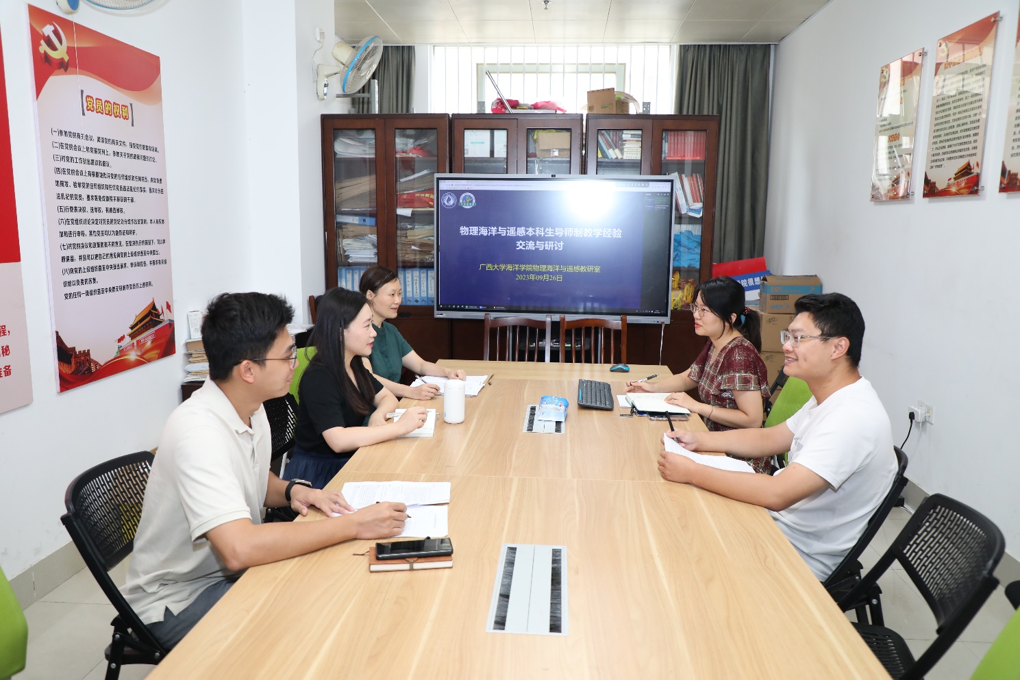 物理海洋与遥感教研室以“物理海洋与遥感本科生导师制教学经验交流与研讨”为题开展研讨。参会教师们分享了自己本科生导师制教学的经验。教研室主任黄荣永副教授、教研室副主任雍阳阳博士以“如何有效地本科生导师制教学”为主题,围绕物理海洋与遥感本科生导师制在海洋科学教学中的地位与作用、如何针对学生个性制定事宜的教学目标、如何针对学生具体情况进行差异化学习指导等进行深入探讨。研讨的最后进行了详细的经验总结,供老师们在未来的具体教学实践中进行思考和完善。
