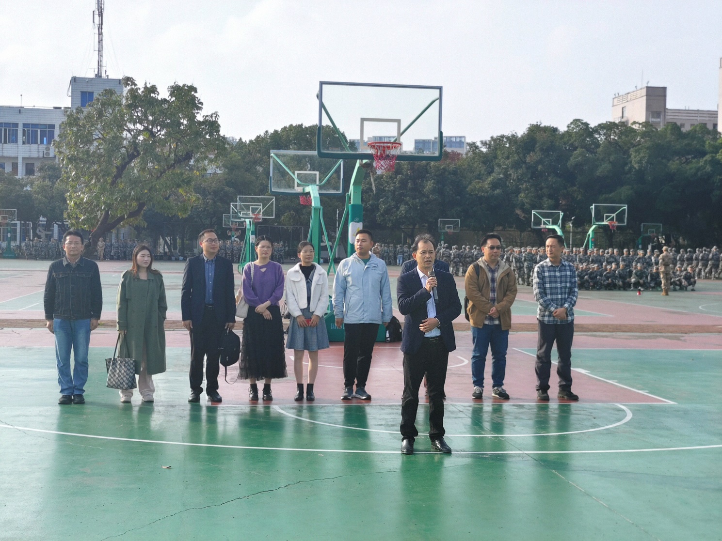 秦华东书记在训练场慰问参训学生并做讲话