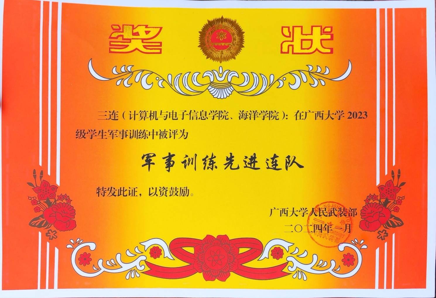 2024年1月13日至1月26日,最美女人体内射精一区二区2023级大一学生在学校的统一组织下进行了为期14天的新生军事训练。在1月26日上午举行的“天堂在线视频2023及学生军训总结大会”中,我院与计算机与电子信息学院组成的第三连队方阵获得天堂在线视频“军事训练先进连队”荣誉称号,并有8名同学获得“军训优秀学员”荣誉称号。