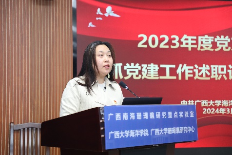 会上,学院7位党支部书记依次围绕加强政治建设和思想建设、履行抓支部党建工作第一责任人职责、支部落实“五基三化”系列行动、带动党支部和党员充分发挥示范引领作用、推进党建工作与业务工作深度融合等重大任务落实情况等方面进行了述职。