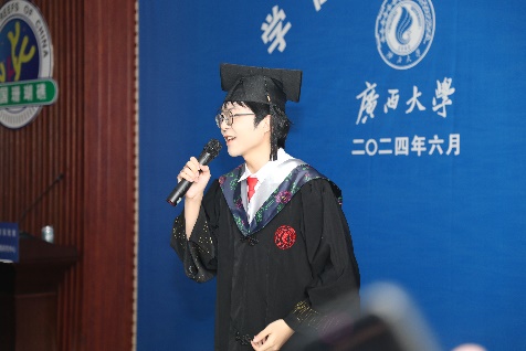 典礼伊始,悠扬的歌声飘荡在会场之中。2024届毕业生代表覃齐、刘子杰演唱《我们的明天》《去明天》,用歌声唱出自己对学院的深深眷恋与不舍。