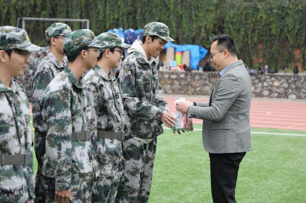 为确保军训顺利进行,提升同学们的参与热情,学院领导与老师亲切关怀,多次组织探望军训队伍。学院党委副书记黄学勇带队,辅导员梁琪老师、班主任王丽伟老师和江红蕾老师等一行人深入军训场地,与同学们亲切交谈,详细了解训练情况,对同学们的吃苦耐劳精神给予高度评价,并叮嘱大家注意休息,保持良好的身体状态。同时,老师们还为同学们送去了餐食等慰问物资,这份来自学院的温暖关怀,极大地鼓舞了同学们的士气。