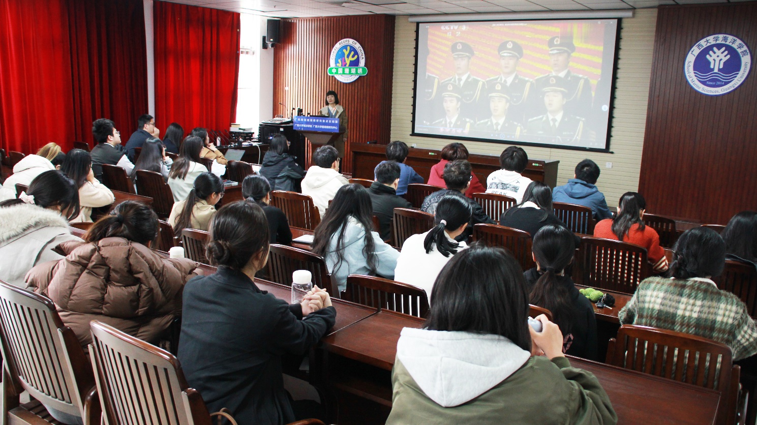 为深入推进传承红色基因,筑牢海洋强国梦想。3月18日下午,学院在西215教室举办了主题为“唱响红色歌谣,铸就红色育人”的“开学第一课” 专题讲座。本次讲座特邀我校艺术学院音乐系覃思教授主讲,我院王瑞副院长主持。学院学生党员及学生干部约60人聆听了此次讲座。本次讲座通过红色歌谣传递爱国情报国志,激发学生爱国情怀,并结合海洋学科特色,激励学生投身海洋强国建设。