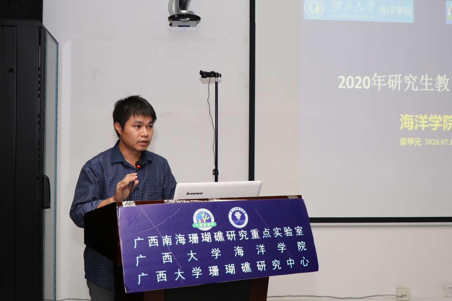 院长助理梁甲元汇报2019—2020学年学院研究生教育的亮点与存在问题。汇报指出:学院研究生教育的主要亮点包括研究生就业率、毕业研究生科研成果、研究生实践基地建设与培养、南海西沙群岛科学考察。对学院后续将提高研究生招生指标以满足各项科研项目运作需要提出了初步方案。