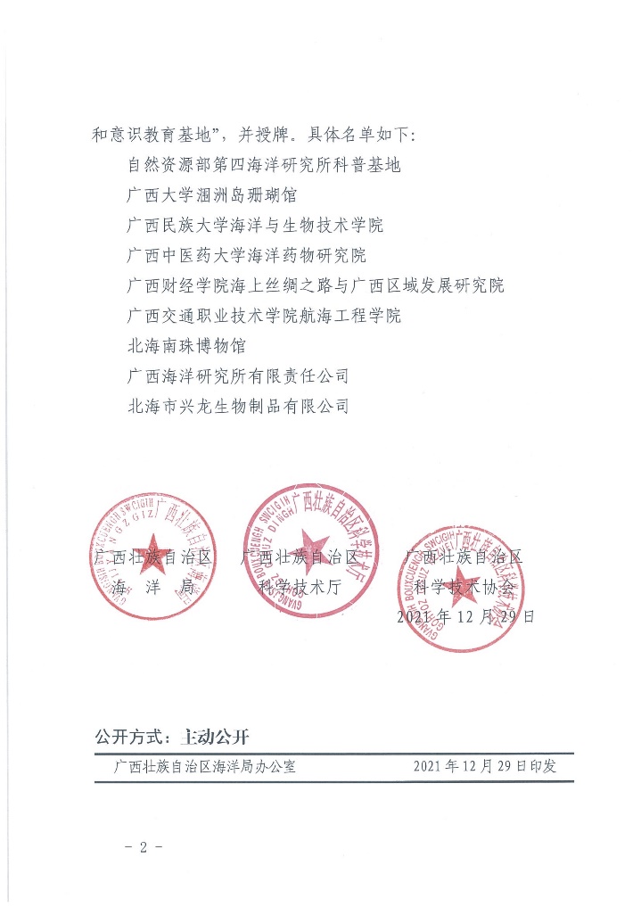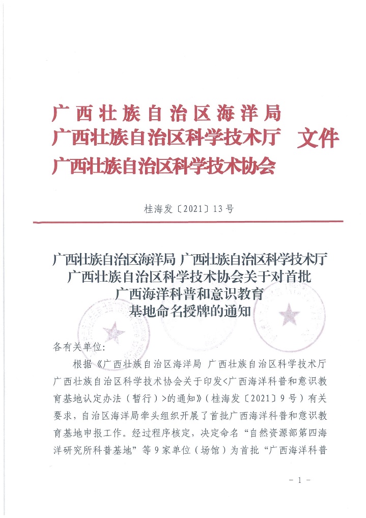 近日,自治区海洋局、自治区科学技术厅、自治区科学技术协会联合下发《关于对首批广西海洋科普和意识教育基地命名授牌的通知》,“天堂在线视频涠洲岛珊瑚馆”位列其中。