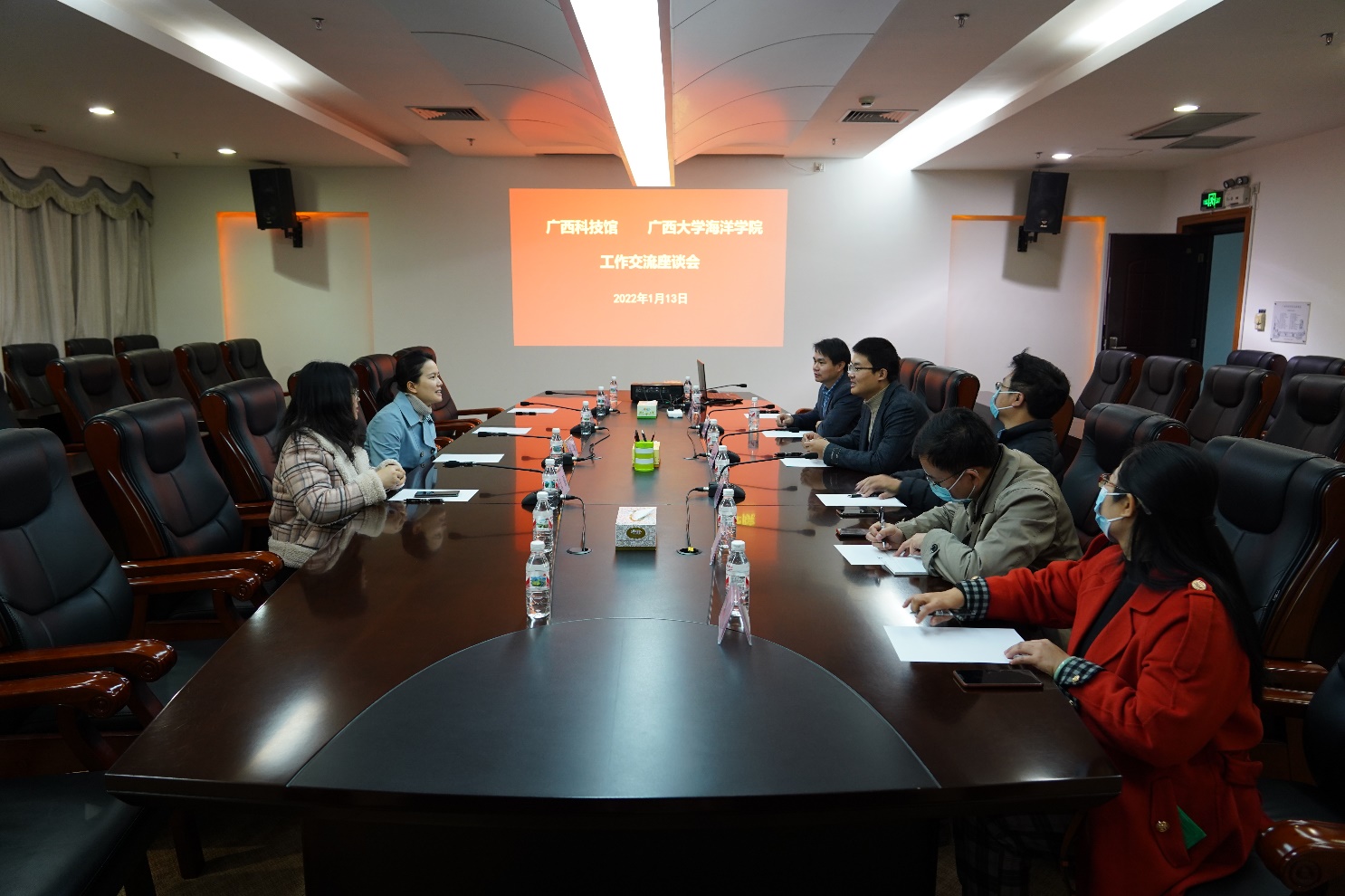 1月13日上午,我院副院长王少鹏、院长助理唐兴颖、梁甲元率领院办同志前往广西科技馆开展工作交流,并就海洋科教馆场馆运营等方面的问题与广西科技馆进行了座谈。广西科技馆副馆长、广西青少年科技中心副主任黎明等热情接待了王少鹏副院长一行。