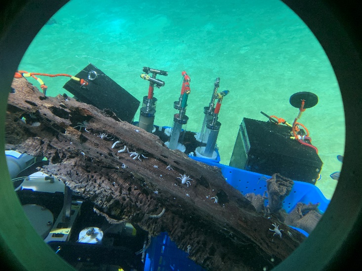 本次考察中,余克服教授作为下潜科学家乘坐“深海勇士”号载人潜器执行SY422潜次,下潜深度为4194.8m,圆满完成了海盆区域(4230m)的地形勘测与人工鲸落的布放、搜索、采样任务,并拍摄了大量珍贵的深海生态影像资料。陈飚助理教授乘坐“深海勇士”号载人潜器所执行的SY420潜次下潜深度为2471.6m,勘测了海山区域2400m-1000m的地形、地貌情况,并采集了冷水珊瑚、铠甲虾、海绵、尸蟞、深海沉木(wood-fall)、深海玄武岩、铁锰结核、深海沉积物等重要的深海数据与样本。我院教师所执行的深潜考察,拓宽了我院对深海生物、地质与环境的认识,为深入我院海洋科学的学科建设积累了宝贵的资料、奠定了重要基础。(文、图/陈飚、余克服 编辑/周剑 审核/余克服)