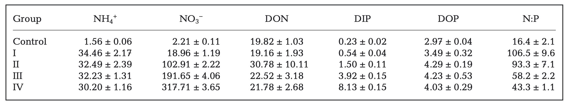 富营养化是导致的珊瑚礁退化的重要因素。涠洲岛珊瑚礁处在相对高纬度区域,在全球气候变暖的背景下其自然环境条件适合珊瑚的生长发育,但涠洲岛的珊瑚礁生态系统仍处于退化之中。宁志铭博士等将涠洲岛上抗干扰能力强的优势种扁脑珊瑚(Platygyra crosslandi)和环境适应性差的鹿角珊瑚(Acropora millepora),置于营养盐浓度与结构(氮磷比)不同的5种环境条件下(表1)进行培养,之后测定这2种珊瑚共生体的藻密度、碳与氮的同位素及其代谢速率(包括钙化率、营养盐摄食率、固氮速率以及共生虫黄藻的光合效率等)。