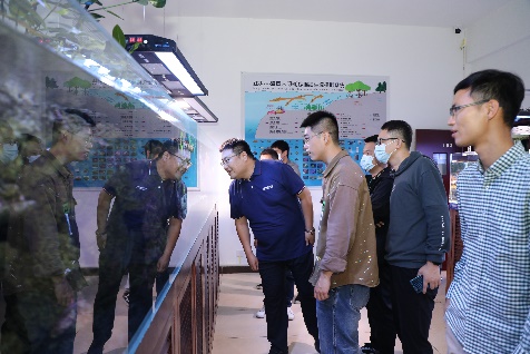 红树林研究中心王欣副研究员接待了我院师生一行,并带领参观、讲解了红树林 - 海草床 - 珊瑚礁综合生境模拟实验室、滨海生态系统生物标本室、微缩滨海湿地、人工模拟雷电雨系统等。师生一行还考察了红树林中心的海洋科学文献典藏馆、海洋生物科普长廊等,了解了红树林研究中心在虾塘红树林生态农场、海草床及珊瑚礁保护与修复工程等方面的科技创新成果,并对海洋学科前沿领域与技术研发开展热烈讨论。双方表示,未来将继续立足广西生态文明建设和生态保护与修复工作,以海洋需求为导向,共同携手加快实施项目、攻坚克难、打造区域创新发展新高地。