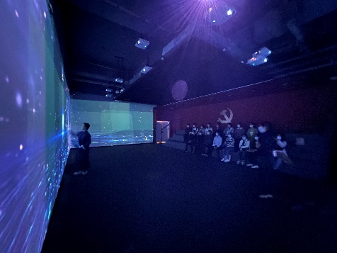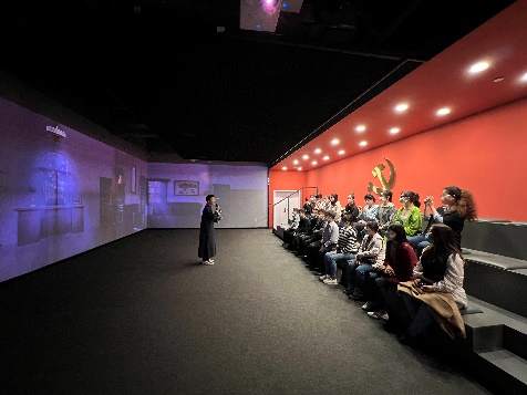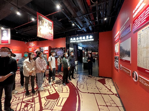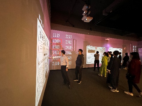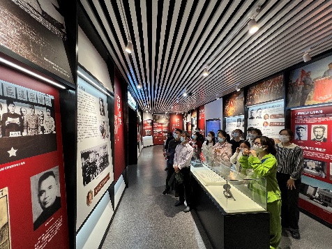 在体验中心,党务干部们跟随讲解员一同参观了主题展、成果展、沉浸式党课体验区、学习交流区和阅读分享区等5个板块,深入了解以纪录片《红色传奇》内容为基础,将声、光、电现代技术融合图片记录、文史资料和文物陈列等展现的广西党组织艰苦卓绝的发展历程和取得的卓越成绩。令人印象深刻的是沉浸式党课体验区,该区采用了声光电现代技术,再现了广西第一个党支部——中共梧州支部成立时的困难险阻。研究生二支部的李劲同志化身代号为“伍竹枝”的中共地下党成员,通过角色扮演、与大家情景互动等方式,破解机密要件密码,帮助革命同志化险为夷。