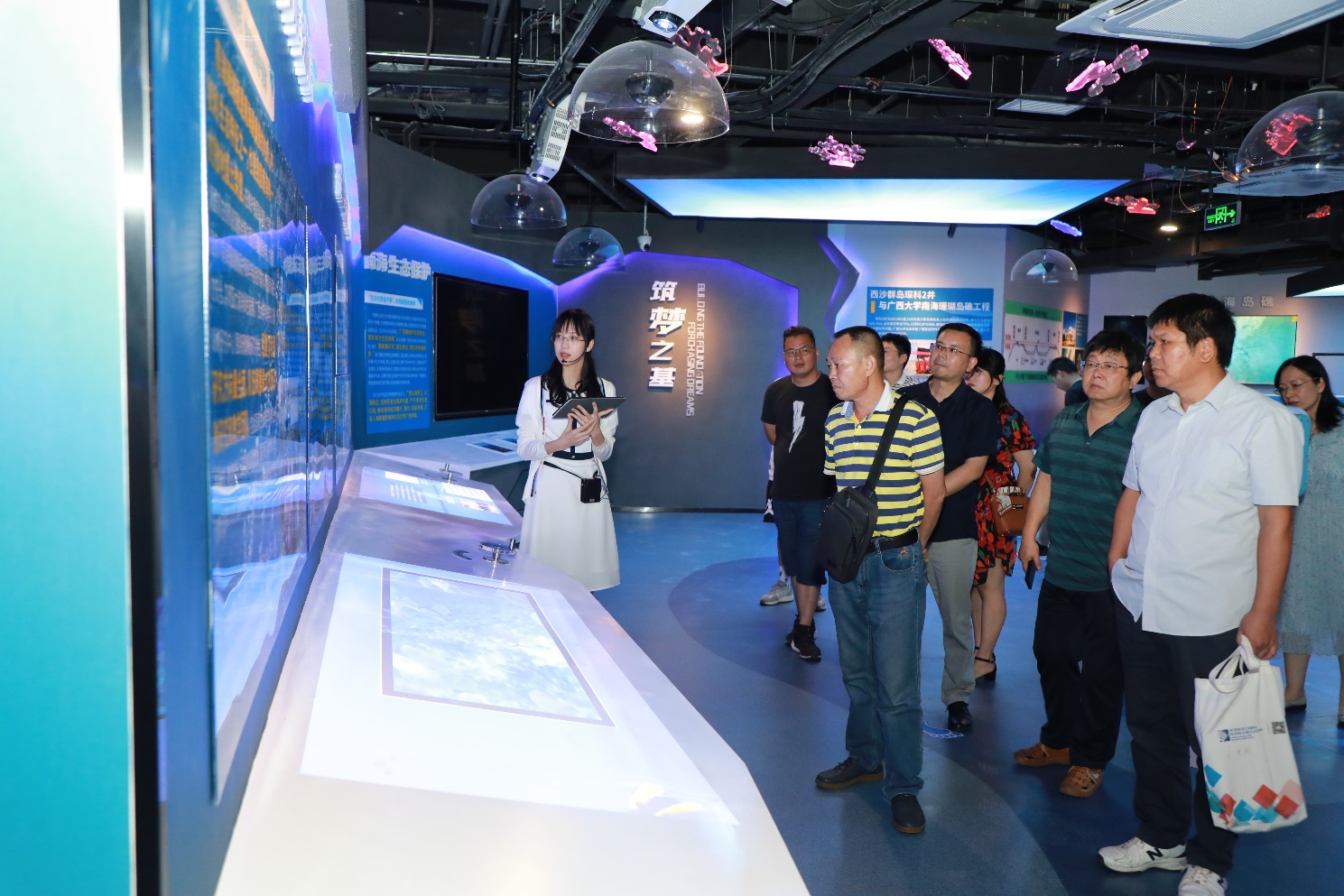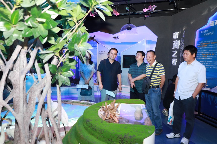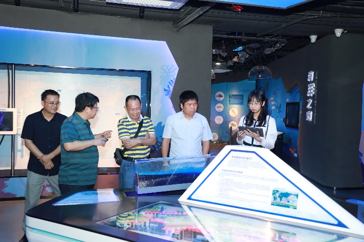 讲座结束,范航清研究员在自治区海洋局预警监测处蒋明星处长、我院院长余克服教授陪同下参观天堂在线视频海洋科教馆,办公室主任李周佳、广西南海珊瑚礁研究重点实验室科研助理王浠源讲解介绍。(周剑、雍阳阳/文、图 周剑、黄荣永/编辑 余克服/审核)