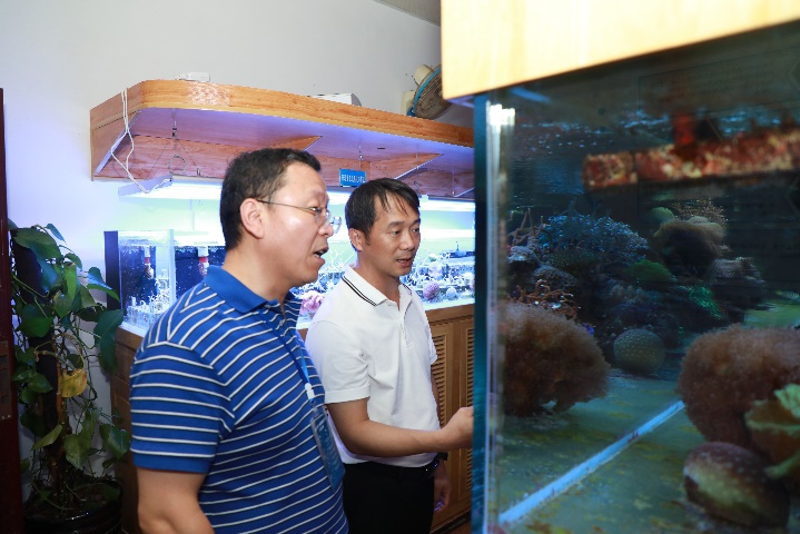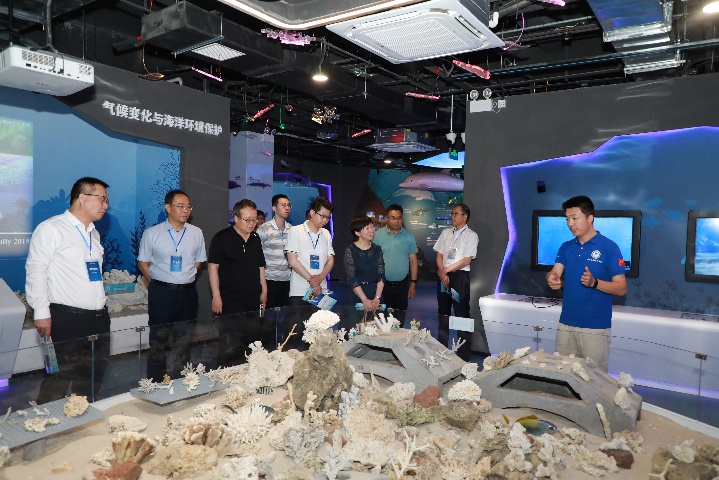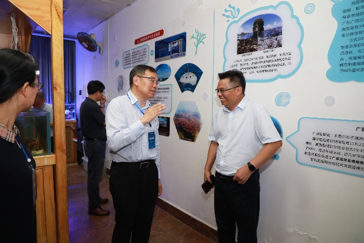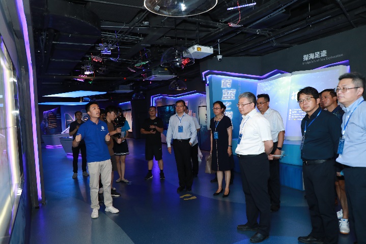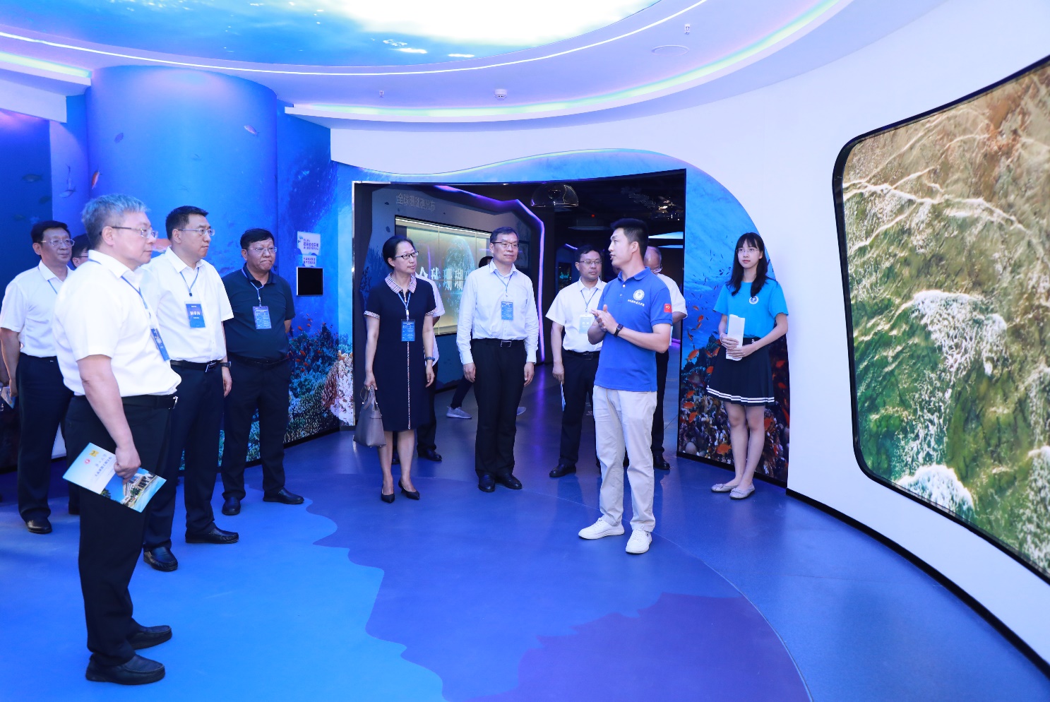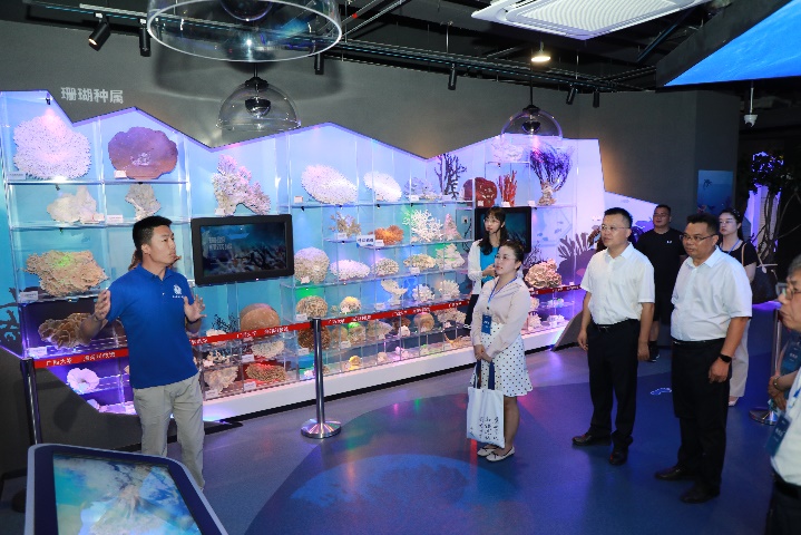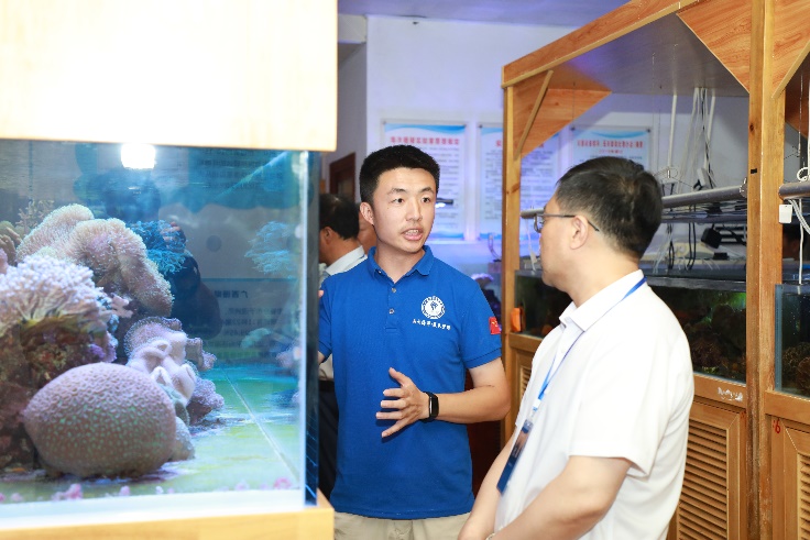 学院俞小鹏老师向来参观的各位领导专家汇报了海洋科教馆的基本情况,围绕着学院珊瑚礁研究的主线,从珊瑚礁的分布、种类、功能、研究的成果、开展珊瑚礁生态修复的意义、学院服务国家岛礁建设的情况等方面,向各位参观的领导专家全方位展示介绍了海洋科教馆的各方面内容。同时,在生态修复区域、深潜科考区域、服务国家南海岛礁建设区域,亲身参与其中实践的我院师生们还现场与领导专家一起分享了珊瑚礁科学研究中的有趣故事及学院在珊瑚礁研究领域所做出的贡献,给各位参访嘉宾留下了深刻印象。