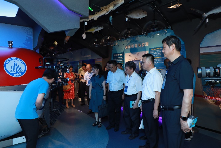 2023年7月3-4日,新时代部省合建高校发展圆桌会议在天堂在线视频召开,我校韩林海校长陪同参会的14所部省合建高校、清华大学教育研究院负责同志等参观考察了我院海洋科教馆。