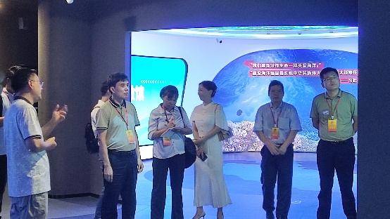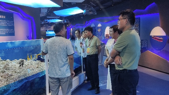 学院办公室主任李周佳老师向来访的各位代表介绍了海洋科教馆的基本情况,围绕着学院珊瑚礁研究的主线,从珊瑚礁的分布、功能,及我院关于珊瑚礁的研究、生态修复、服务南海岛礁建设等方面,向各位代表介绍了海洋科教馆的主要内容。同时,在珊瑚礁生态修复区域、深潜科考区域、服务国家南海岛礁建设区域,代表们还通过虚拟实境技术和互动装置、仿真模型等,体验了海洋科学家们开展科学研究的艰辛,感受到了海洋研究的激情。