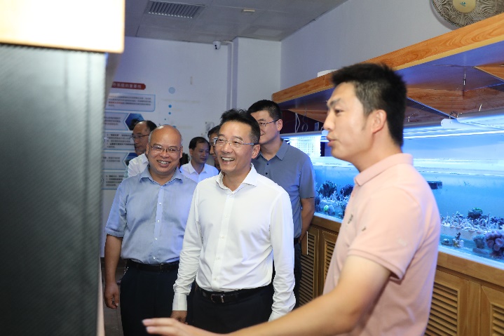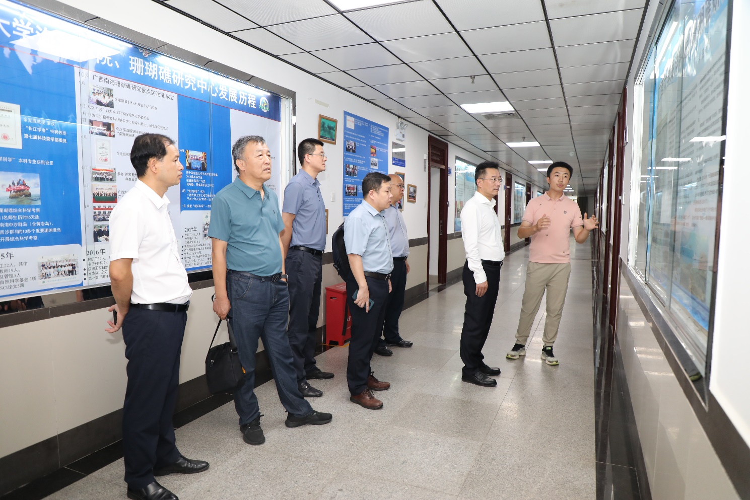朱达书记一行考察了我院综合建设情况、发展历程以及广西南海珊瑚礁研究重点实验室。海洋生物与生态教研室俞小鹏博士向朱达书记一行汇报了我院在团队建设与发展、学科建设、科研成果转换、实验平台与野外台站建设、教学与实验实践等方面取得的成绩。朱达书记对我院积极融入天堂在线视频“双一流”建设工作所取得的成绩给予了肯定。
