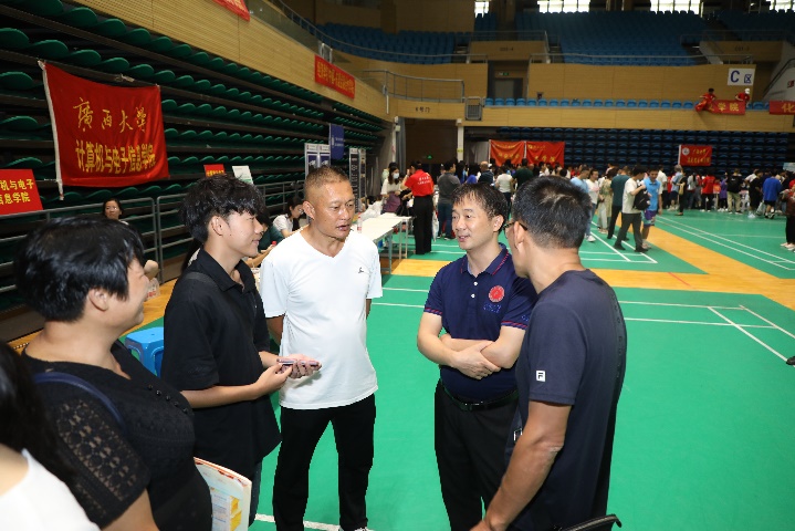 秦华东书记指导迎新工作并与学生家长亲切交谈