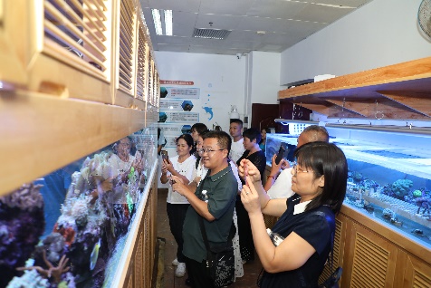 新生家长们参观海洋科教馆、珊瑚礁生态修复实验室