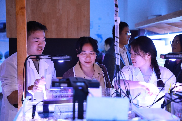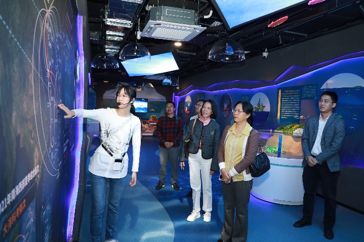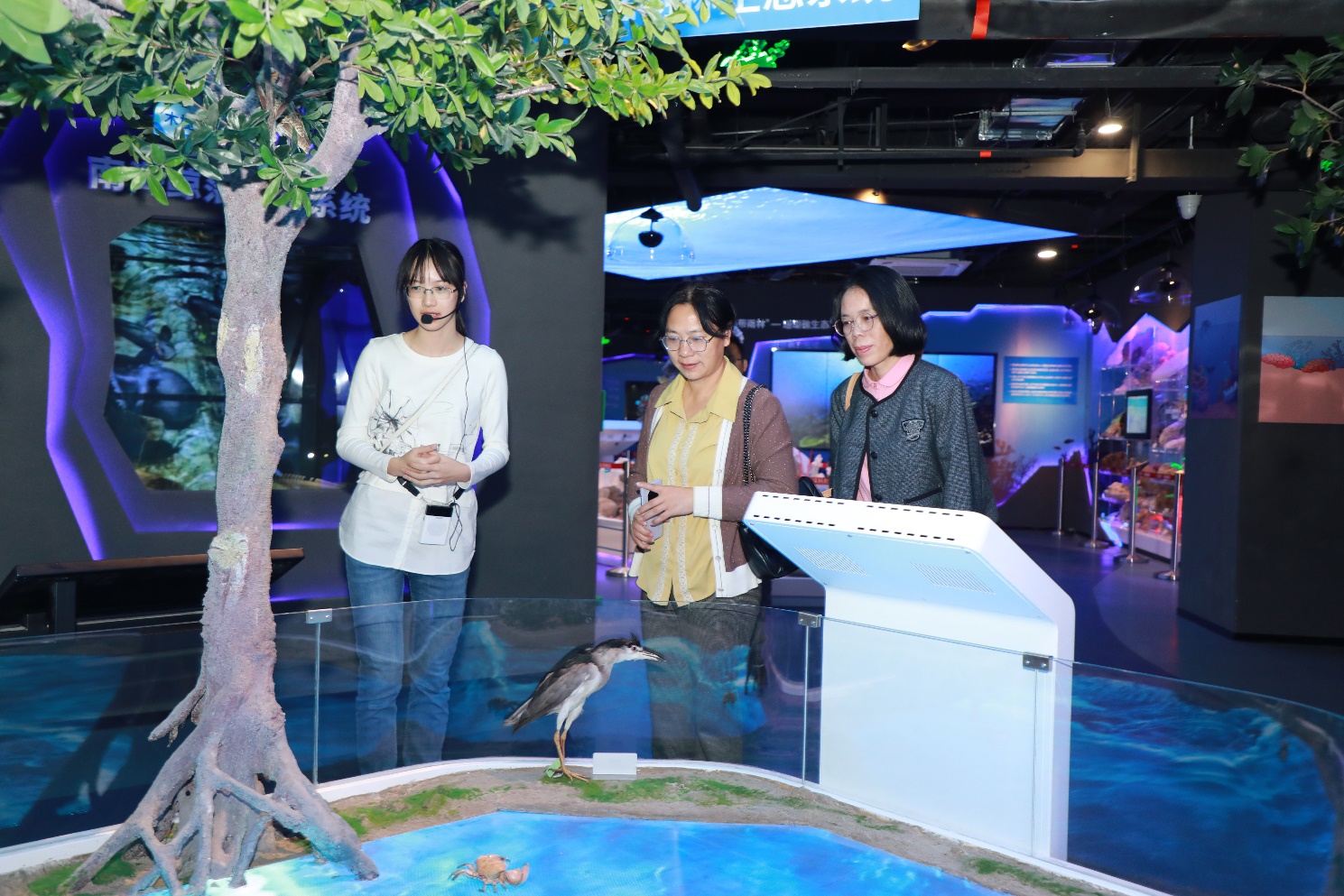 福建农林大学最美女人体内射精一区二区副院长黄小红教授(中)考察天堂在线视频海洋科教馆