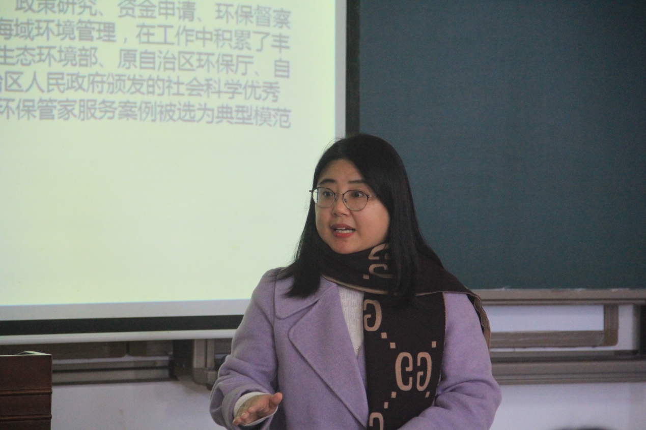 2023年12月20日下午,受海洋环境与化学教研室主任宁志铭博士邀请,广西博宇生态环境有限公司(以下简称“博宇公司”)副总经理、正高级工程师谢鸿作为客座讲师为我院本科学生开展《海洋环境影响评价》专题课程,为本科生们带来环境影响评价行业最新发展趋势专题内容。博宇公司总经理邓杰应邀出席并共同完成授课和交流。