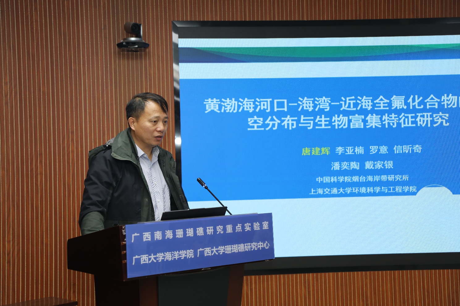 2023年12月28日上午,中国科学院烟台海岸带研究所研究员、博士生导师、中国科学院海岸带环境过程与生态修复重点实验室副主任唐建辉莅临我院开展学术交流,并为师生们作了题为“黄渤海河口-海湾-近海全氟化合物的时空分布与生物富集特征研究”的学术报告。报告会由我院梁甲元副院长主持。