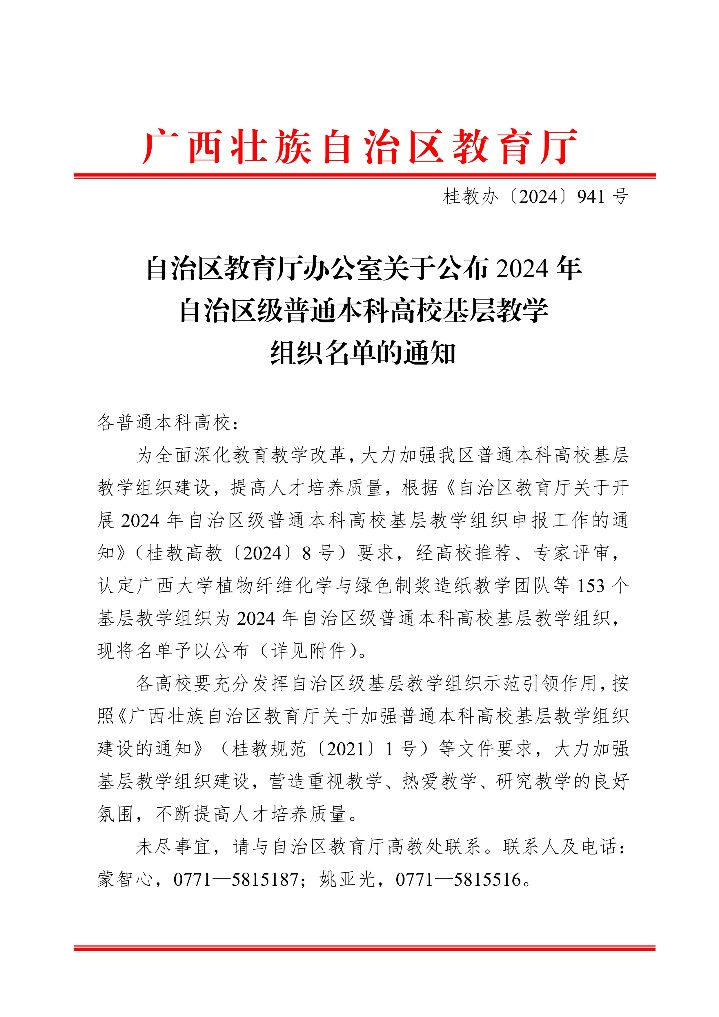 近日,广西壮族自治区教育厅印发了《关于公布2024年自治区级普通本科高校基层教学组织名单的通知》(桂教办〔2024〕941号),我院余克服教授负责的海洋科学系基层教学组织成功获批。