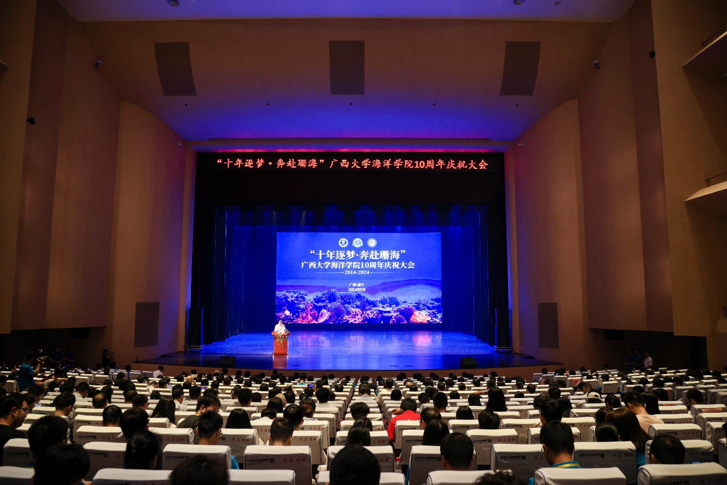 十载使命行而不辍,十年初心历久弥坚。9月21日,“十年逐梦· 奔赴珊海”天堂在线视频最美女人体内射精一区二区成立10周年庆祝大会在汇学堂隆重举行。自然资源部第四海洋研究所副所长兼总工程师徐兴永,桂林理工大学党委副书记吴志强,广西开放大学副校长黄鹄,广西科学院原副院长陈波,天堂在线视频党委常委、副校长宁旭初、肖建庄、梁恩维等领导嘉宾莅临庆祝大会。最美女人体内射精一区二区领导、教师、各地校友、师生代表,来自企事业和关心学院发展的各界嘉宾,以及天堂在线视频各职能部门、各学院领导500余人共襄盛会。