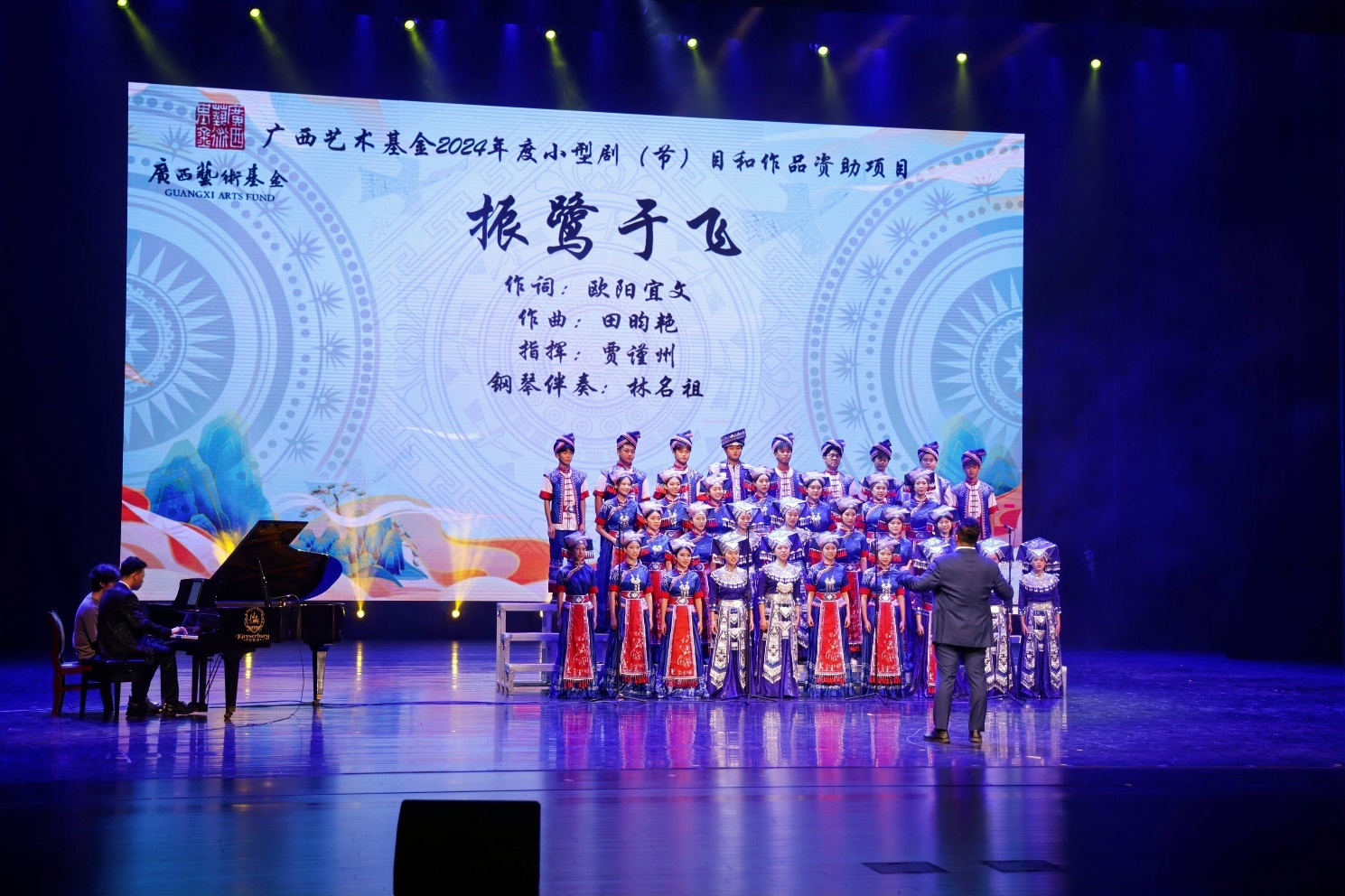 在《陆海统筹 共筑梦想》篇章中,艺术学院舞蹈系带来的瑶族女子群舞《日上·梯田》展现了自然的馈赠和民族团结的精神;艺术学院音乐系合唱《振鹭于飞》象征着纯洁与奋进,彰显了学术探索和精神力量的培养。节目不仅颂扬了学院精神,也传承了中华民族共同体价值观。