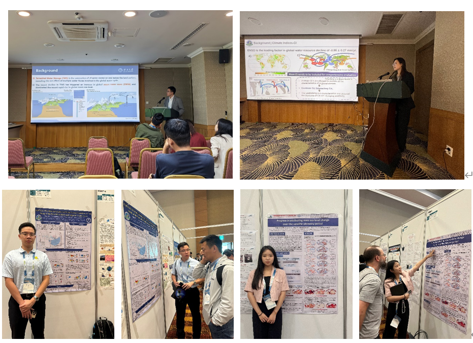 (2)胡安戈硕士研究生(物理海洋与遥感教研室)在水文科学分会场HELPING science for solutions decade做题为“Downscaling GRACE(-FO) Data Resolution for Water Storage Anomalies: A Case Study of the Pearl River Basin and Adjacent Coastal Areas”的展板报告。