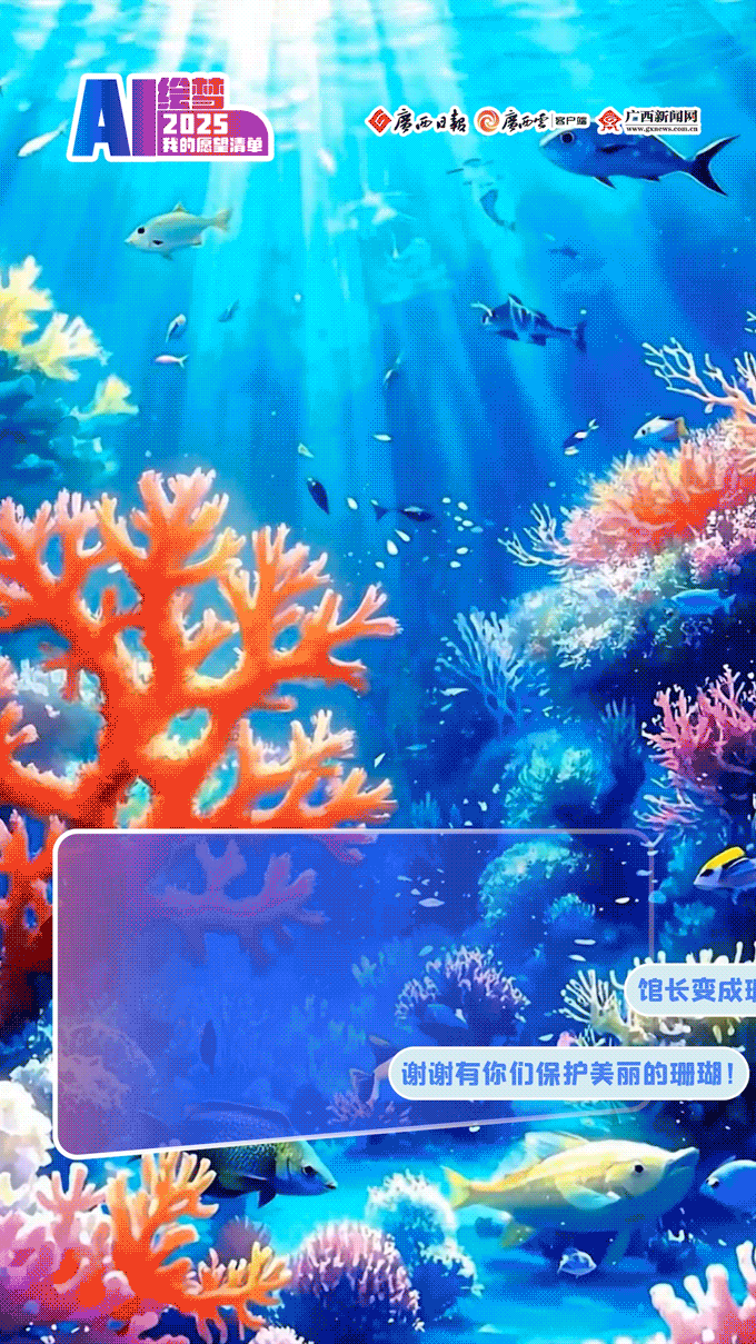 近日,广西云-广西日报特别推出“AI绘梦·2025愿望清单”系列报道,通过“AI+动漫手绘+弹幕”的形式呈现各行各业奋斗者朴实而真挚的新年愿望,共同绘就对广西和国家未来发展的殷切期许与美好祝愿。我院黄雯副教授入选其中。他的新年愿望是:“希望培育的珊瑚宝宝们茁壮成长,为海底居民缔造幸福乐园。”