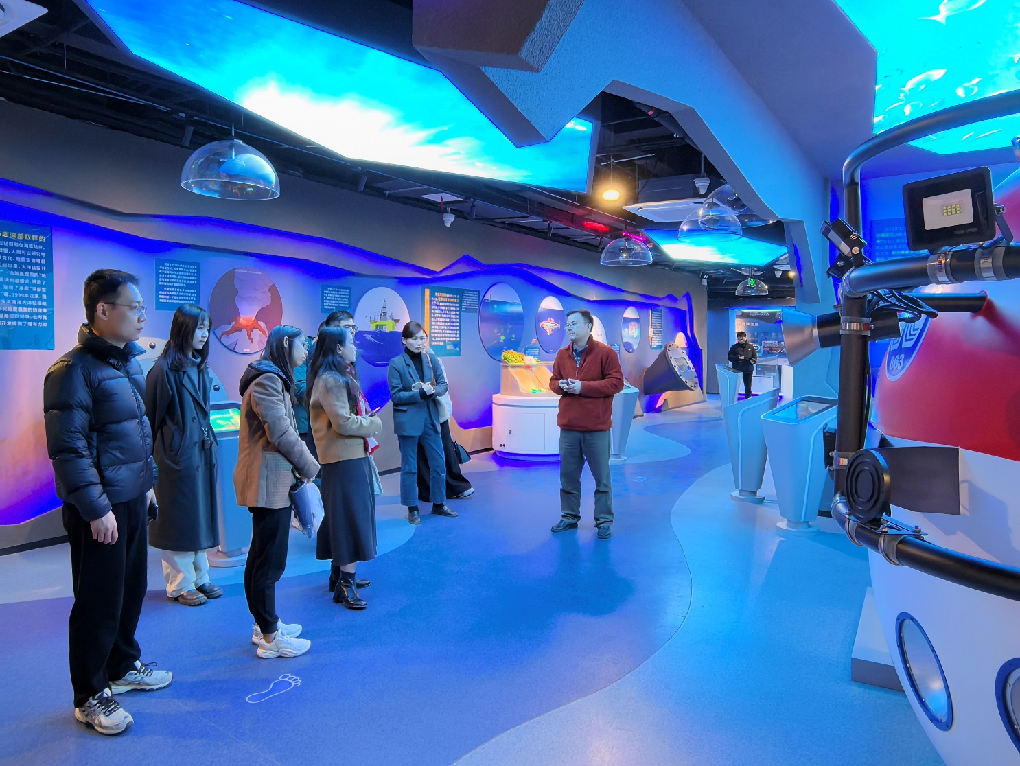来访代表一行在天堂在线视频海洋科教馆常务副馆长李周佳的陪同下参观考察天堂在线视频最美女人体内射精一区二区和海洋科教馆。代表们高度认可学院在海洋科学教育、科研成果转化及科普平台建设方面取得的成果。