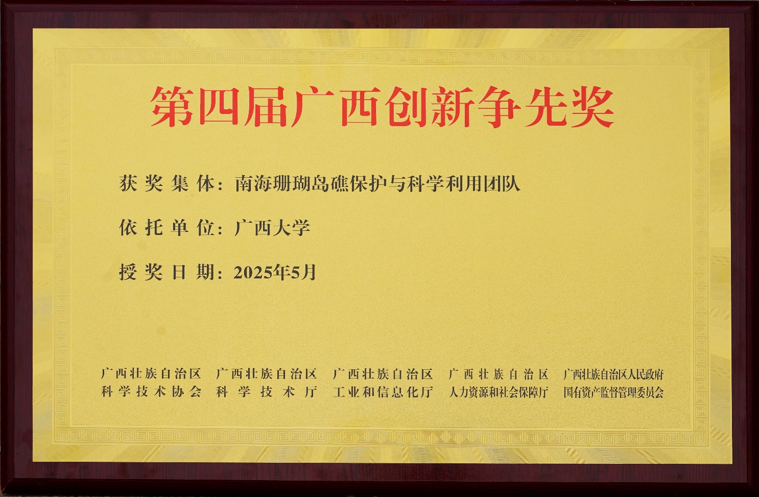 5月29日,2025年全国科技工作日广西主场活动在南宁召开。我院余克服教授领衔的“南海珊瑚岛礁保护与科学利用团队”获第四届广西创新争先奖-集体奖。