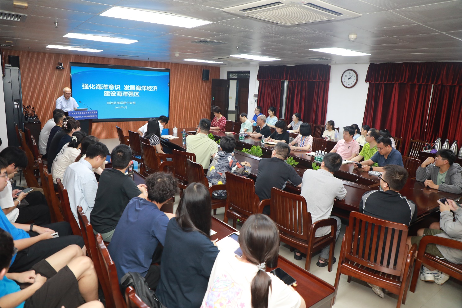 报告结束后,宁向军与师生围绕海洋人才培养、学科建设、科技创新和东盟合作等进行了深入交流。此次报告为师生理解海洋强国战略、明确广西向海发展路径提供了重要指引,进一步激发了西大师生投身广西海洋事业的热情。