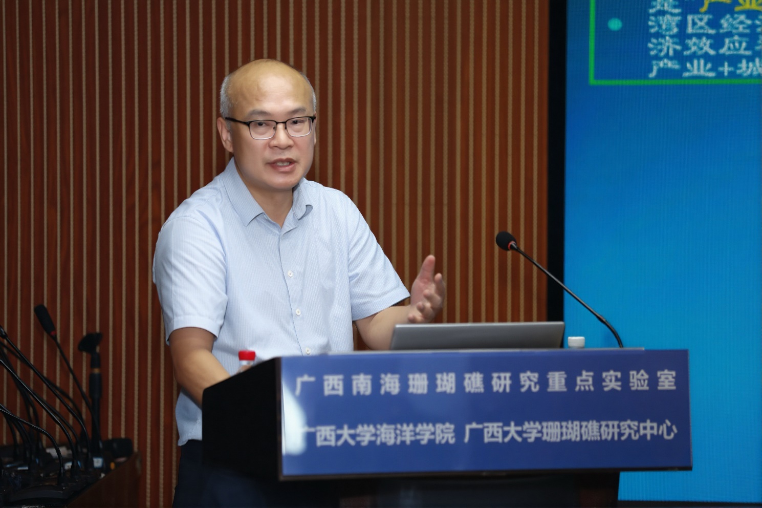 报告中,宁向军系统梳理了党的十八大以来,以习近平同志为核心的党中央关于建设海洋强国的重大战略部署和系列重要论述,强调习近平总书记关于“经略海洋”的重要论述为广西海洋经济的发展指明了方向。宁向军以翔实的数据展示了“广西这片海”的综合情况、广西海洋经济的构成,并介绍了近年来的临港产业、新兴产业方面取得的积极进展。他进一步详细分析了广西海洋经济现状,展示了北部湾在海洋经济中的潜力和机遇。同时,宁向军解读了国家和自治区层面推动海洋经济发展的相关政策,并阐释了广西“一核两区十带”发展布局,提出广西应构建现代化沿海经济带,强化区域协作,推动海洋生态保护和高质量发展。宁向军强调,广西向海发展具备独特区位优势(面向东盟)和政策机遇,但也面临交通瓶颈、人才短缺等挑战,亟需突破。