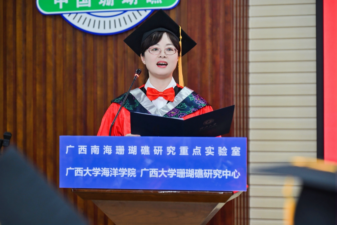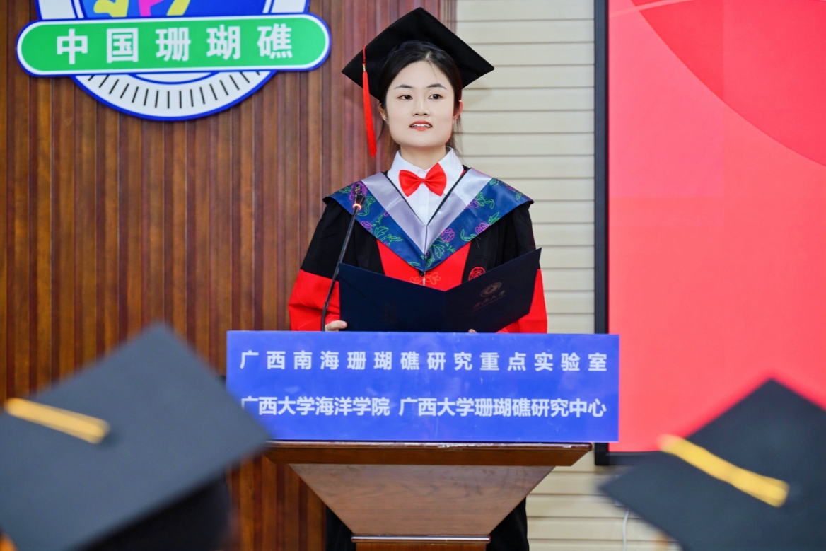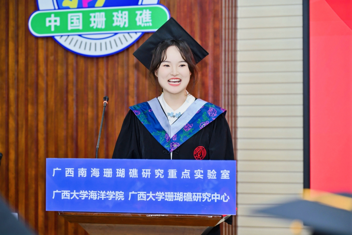 博士研究生毕业生代表康亚茹同学在发言中回顾了自己在海院七年的硕博生涯,表示作为学院发展的见证者,深感自己身上所肩负的责任之重大。