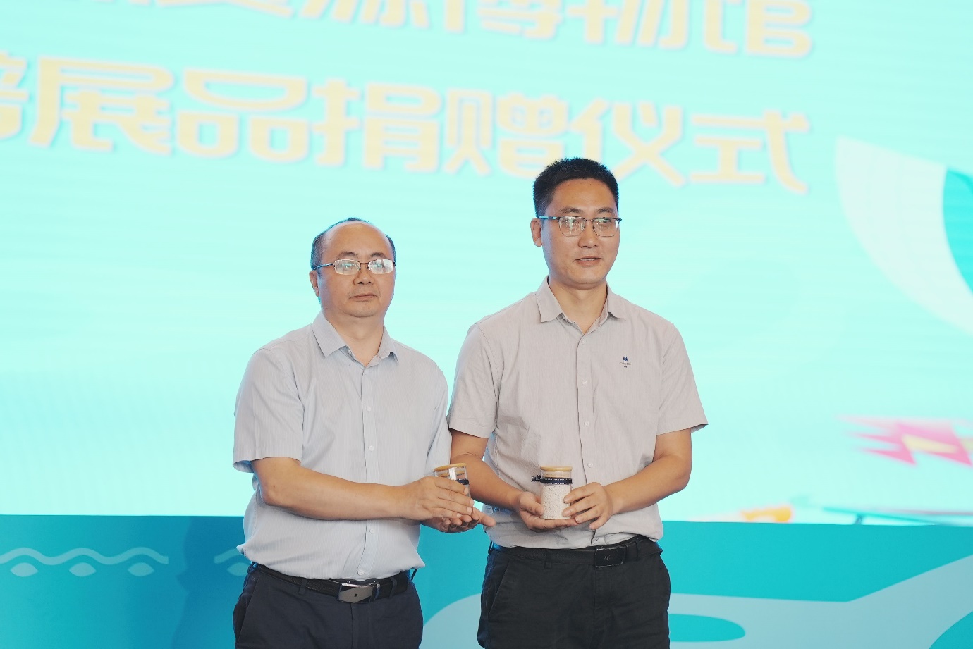 Vice-Dean Wang Rui and Wei Jiahong (Deputy Director of the Natural Resources Museum of Guangxi) conducted the donation of Xisha islands samples