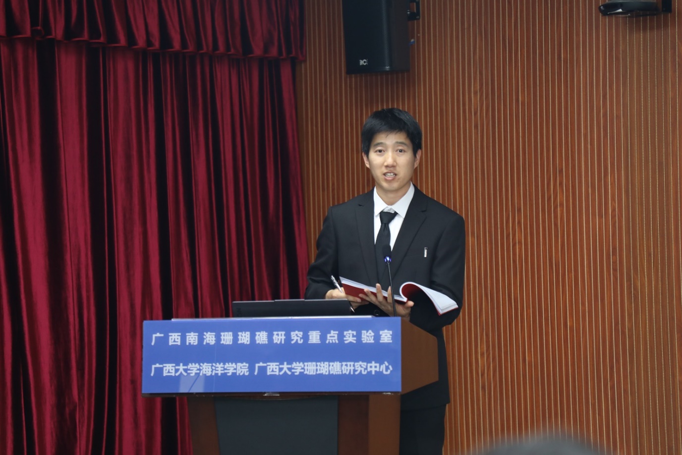 Since its establishment in 2014, the college has graduated 8 batches of PhD students. Since Han Minwei entered the Guanxi University, he has published 7 SCI papers as the first author, including 4 papers in SCI Q1 journals (1 cover article, top), 1 paper in SCI Q2 journal (top), and 1 paper papers in SCI Q2 and Q3 journals. During graduate studies, Dr. Han Minwei participated in 16 comprehensive marine scientific expeditions, totaling 312 days and over 10,000 nautical miles voyage. These expeditions covered Guangxi, Guangdong, Hainan, Fujian, the Xisha Islands and Zhongsha Islands in the SCS, the Taiwan Strait, the East China Sea, the Yellow Sea, the Strait of Malacca, the Equator waters, and the Eastern Indian Ocean. He obtained more than 740 samples and 12 sets of hydrological and meteorological observation data. In addition, Han Minwei has won 21 individual awards and honors, as well as 3 collective titles, including the National Scholarship for Doctoral Students, the Baogang Scholarship, the Guangxi University President Scholarship, Outstanding Graduates of Guangxi University, "Tao Jianming Scholarship" of Guangxi University, Outstanding Student of Guangxi University and Outstanding Student Leader of Guangxi University. This successful completion of the PhD dissertation defense again demonstrated the School of Marine Sciences 's capabilities in talent cultivation, showcased the high-level research excellence and also laid a stronger foundation and set higher goals for the future graduates training.