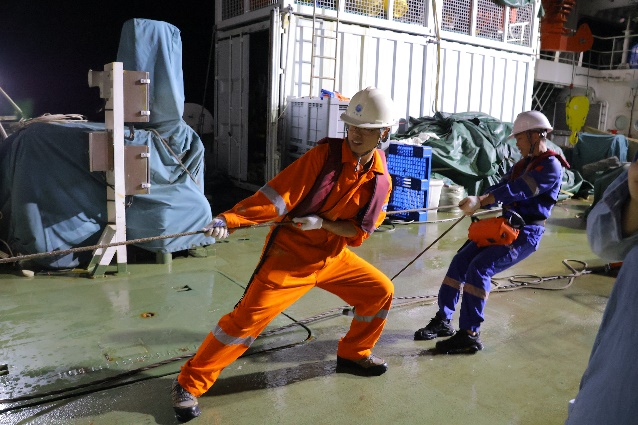 2023 Western Pacific Foundation Committee shared voyage deep-sea sediment collection operation (the first right is Dr. Yu Xiaopeng)